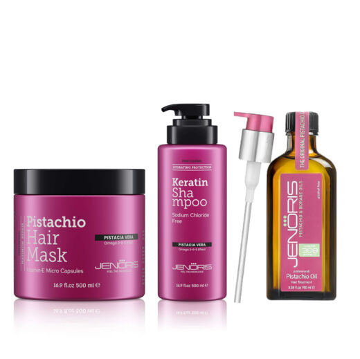 JENORIS KIT – SHAMPOO 500ML + HAIR MASK 500ML + PISTACHIO OIL 100ML