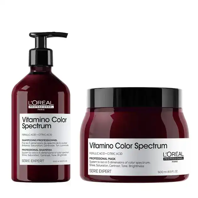 סט שמפו ללא מלחים ומסכה להגנה על שיער צבוע 'ויטמינו קולור ספקטרום' | לוריאל