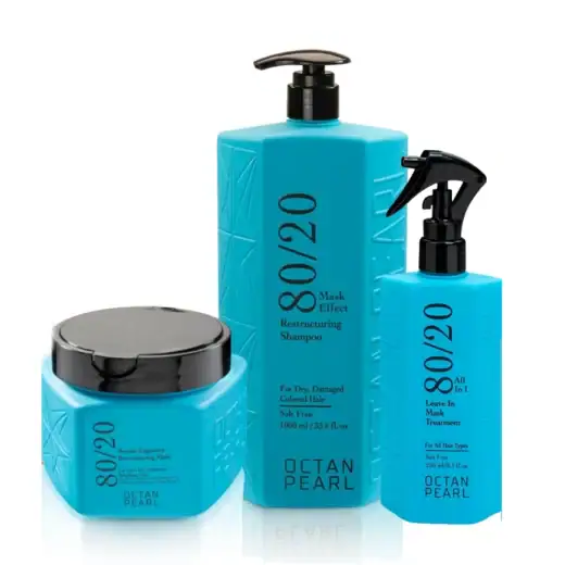 ערכת 80/20 אוקטן פרל לשיקום שיער יבש ופגום. מכילה קרטין.