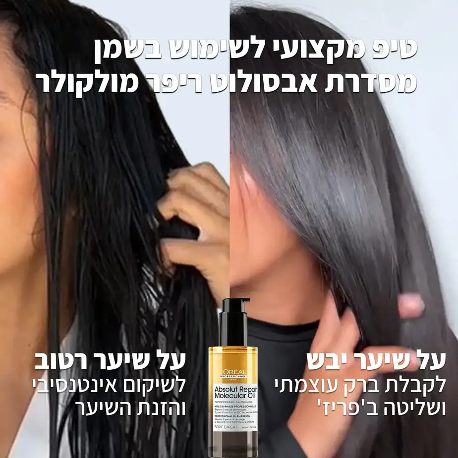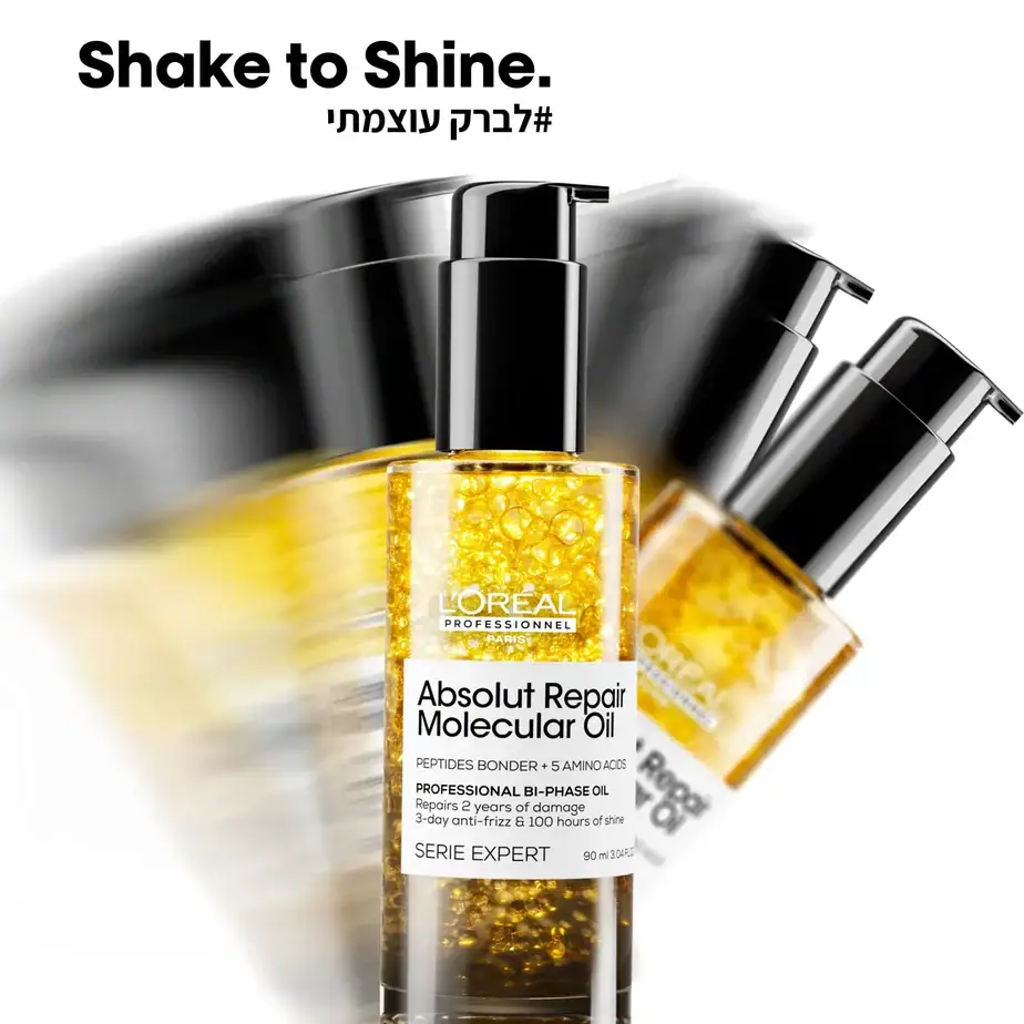 שמן דו פאזי מקצועי לשיקום שיער פגום מסדרת 'אבסולוט ריפר מולקולר' 90 מ"ל LOREAL