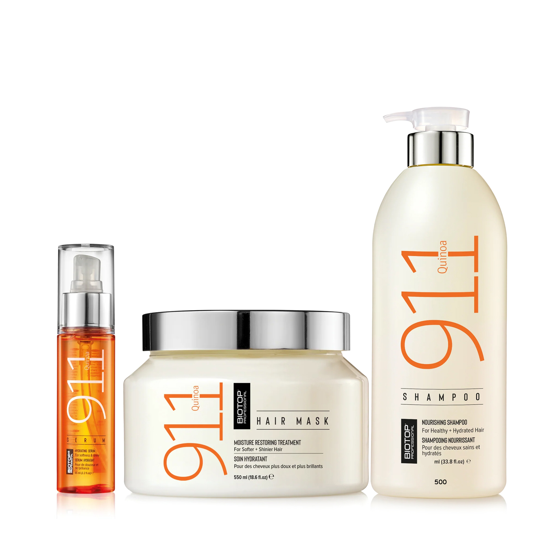 שמפו, מסכה וסרום קינואה לשיער יבש ופגום 911 ביוטופ BIOTOP